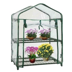 Mini invernadero de 4 niveles, casa de cultivo cálida con cubierta de plástico de PVC, marco de acero, puerta enrollable con cremallera